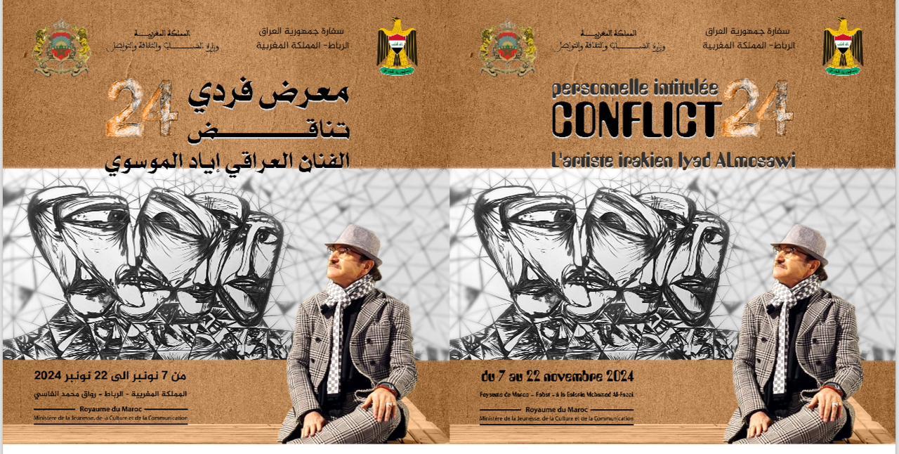 يذكر ان رواق محمد الفاسي التابع لوزارة الثقافة بالرباط سيحتضن معرضا فرديا للفنان العراقي إياد الموسوي تحت عنوان “تناقض24″، ما بين 7 و22 نونبر الجاري، حيث وجهت سفارة جمهورية العراق دعواتها لعدد من الشخصيات العربية والمغربية الوازنة ذات الصلة بالفن التشكيلي، لحضور حفل افتتاح المعرض يوم الخميس المقبل في الساعة السابعة مساء.