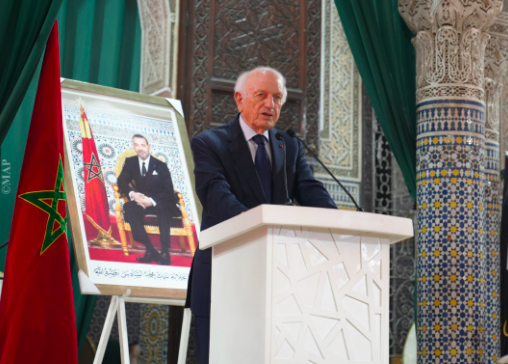 في السياق ذاته، نوه مستشار جلالة الملك بالقيادة المستنيرة لـ محمد السادس، معتبراً أنها تحظى بإشادة دولية وتجعل من المغرب نموذجاً لأمة قادرة على رفع لواء الإجماع الذي صهرته التعددية.