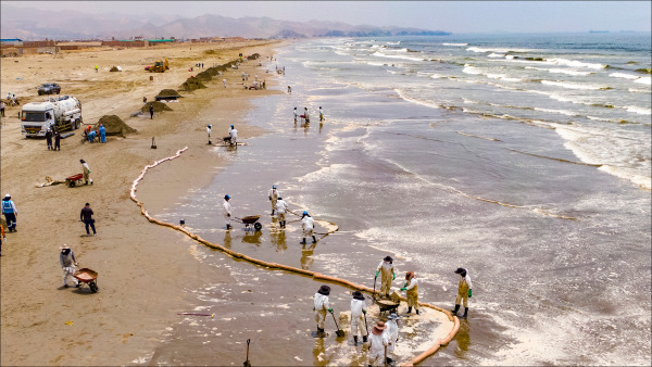 وأعلنت البيرو حالة طوارئ بيئية بعد تسرب حوالي 1,2 مليون لتر من النفط الخام في البحر في 15 يناير الحالي عندما ضربت أمواج عاتية ناتجة عن ثوران بركان ناقلة نفطية أثناء تفريغ حمولتها في مصفاة تكرير.